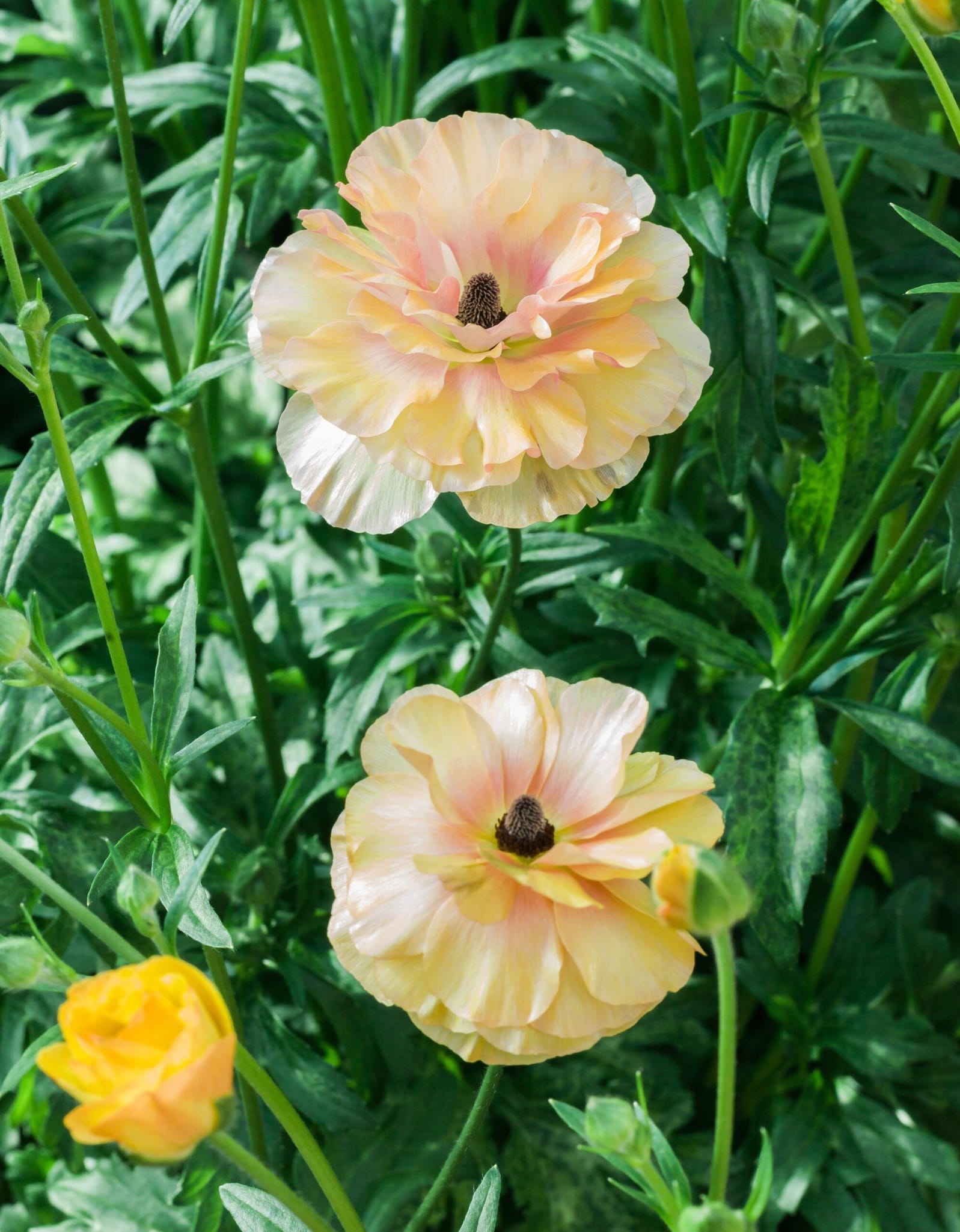 Ranunculus Butterfly™ Vestalis® is an apricot/salmon variety that is good for a long vase life. Each stem carries as many as five to seven flowers. This Ranunculus has beautiful colors and is perfect for cutting.