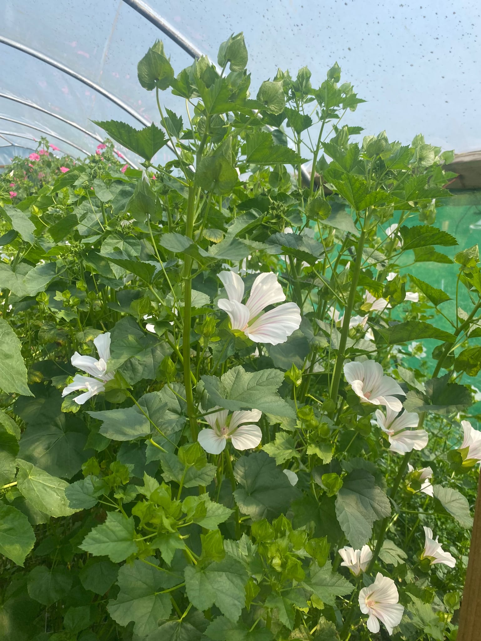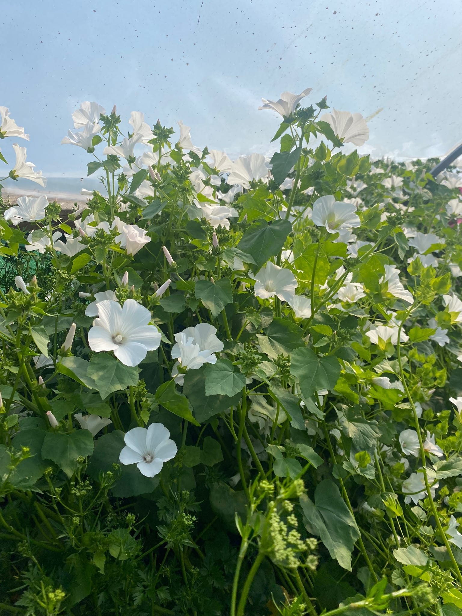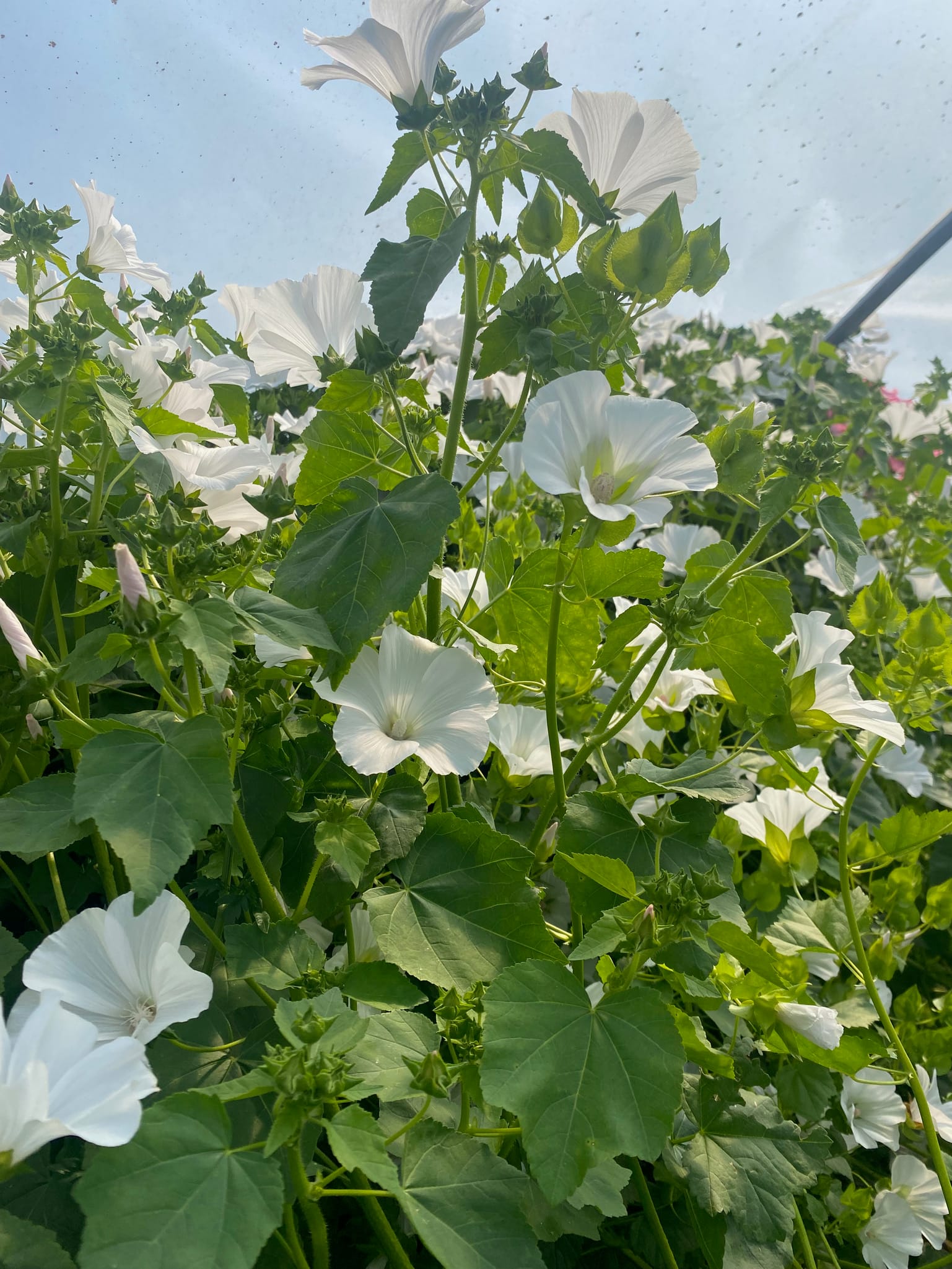 Lavatera Mont Blanc – tall cutting variety with large white blooms. Supplied as 6 jumbo plug plants.