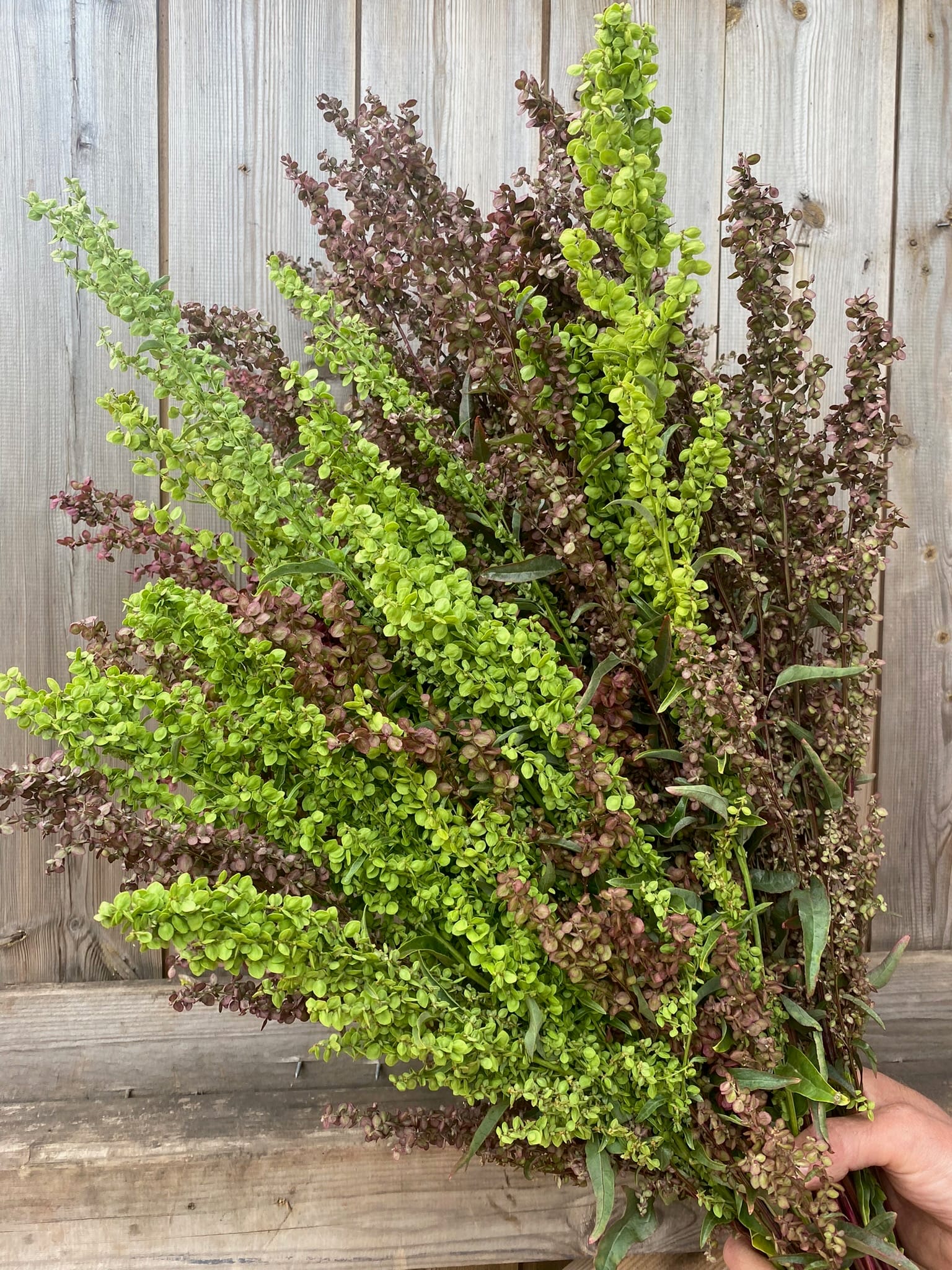 Once you’ve grown Orach in your garden it will make itself at home – you have been forewarned!! We welcome any volunteer seedlings that appear at the farm because I know it will look after itself, grow to at least 6ft and I can harvest the seed stems all summer! It is a fabulous bouquet filler – so understated in the garden but a real scene stealer in an arrangement!