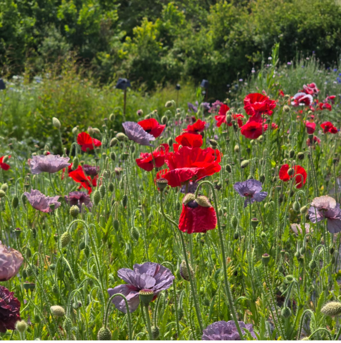 Out of all the poppies available this beautiful grey variety is one we look forward to seeing bloom every year. This mix we gather from the farm produces shades ranging from pale lilac, deep plum, brick red and blue grey. The flowers are sometimes single petals, delicate and ethereal and others are full of ballerina tutu frills.