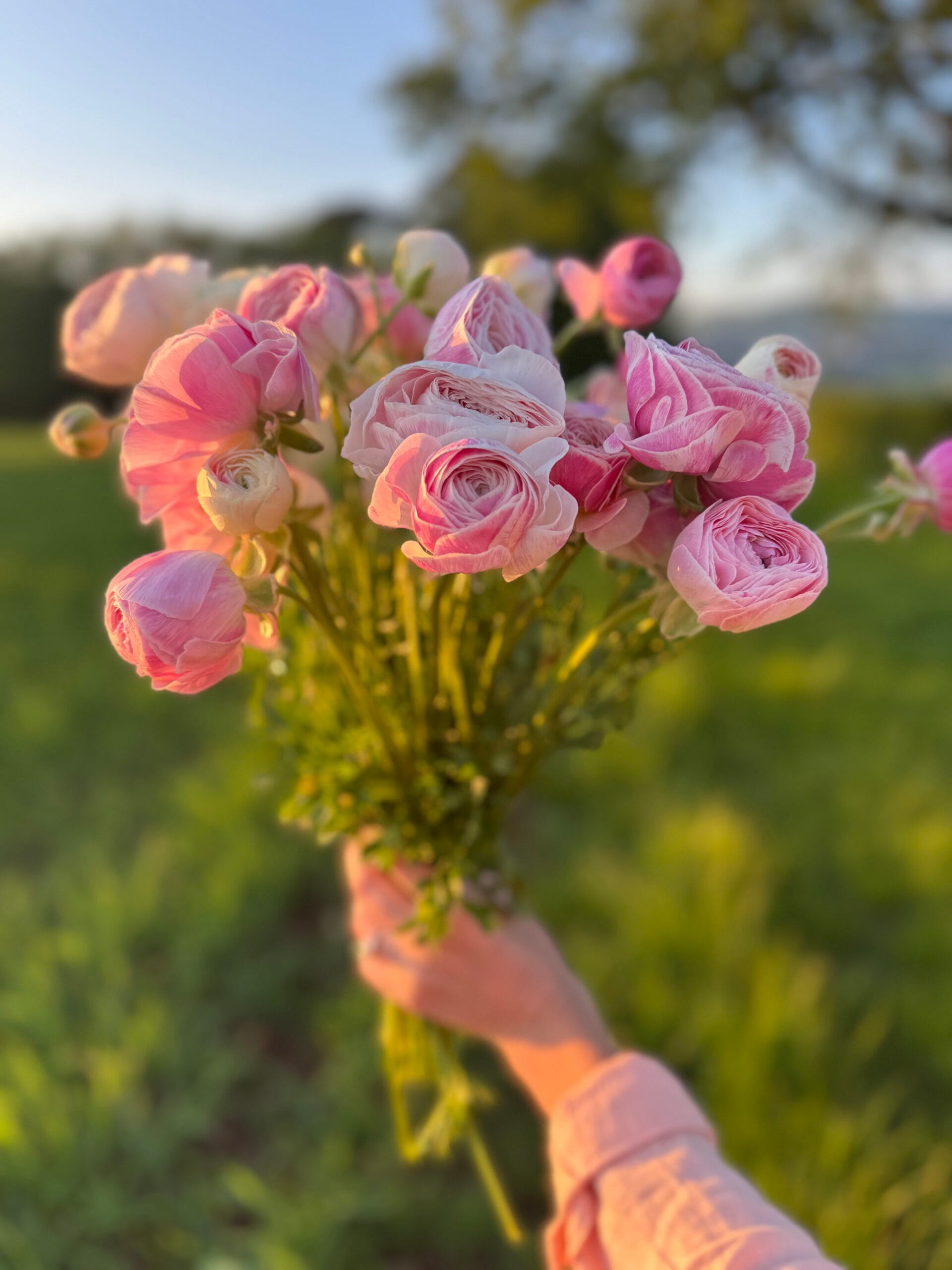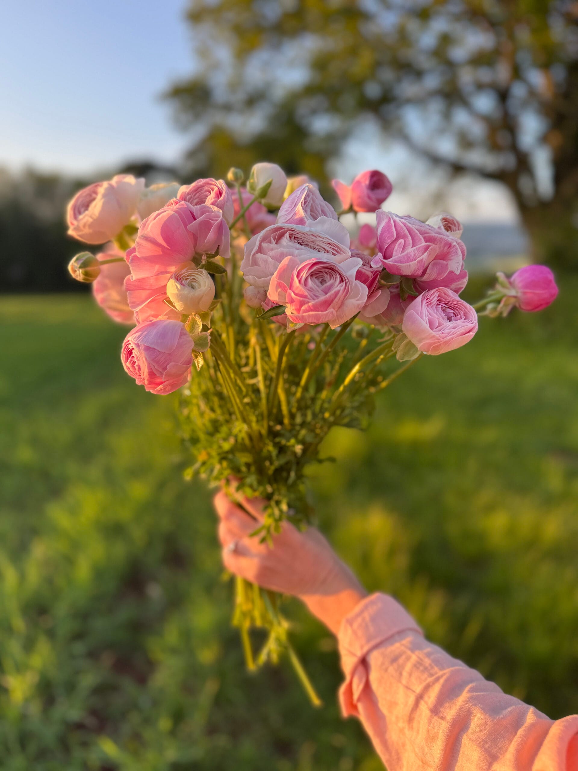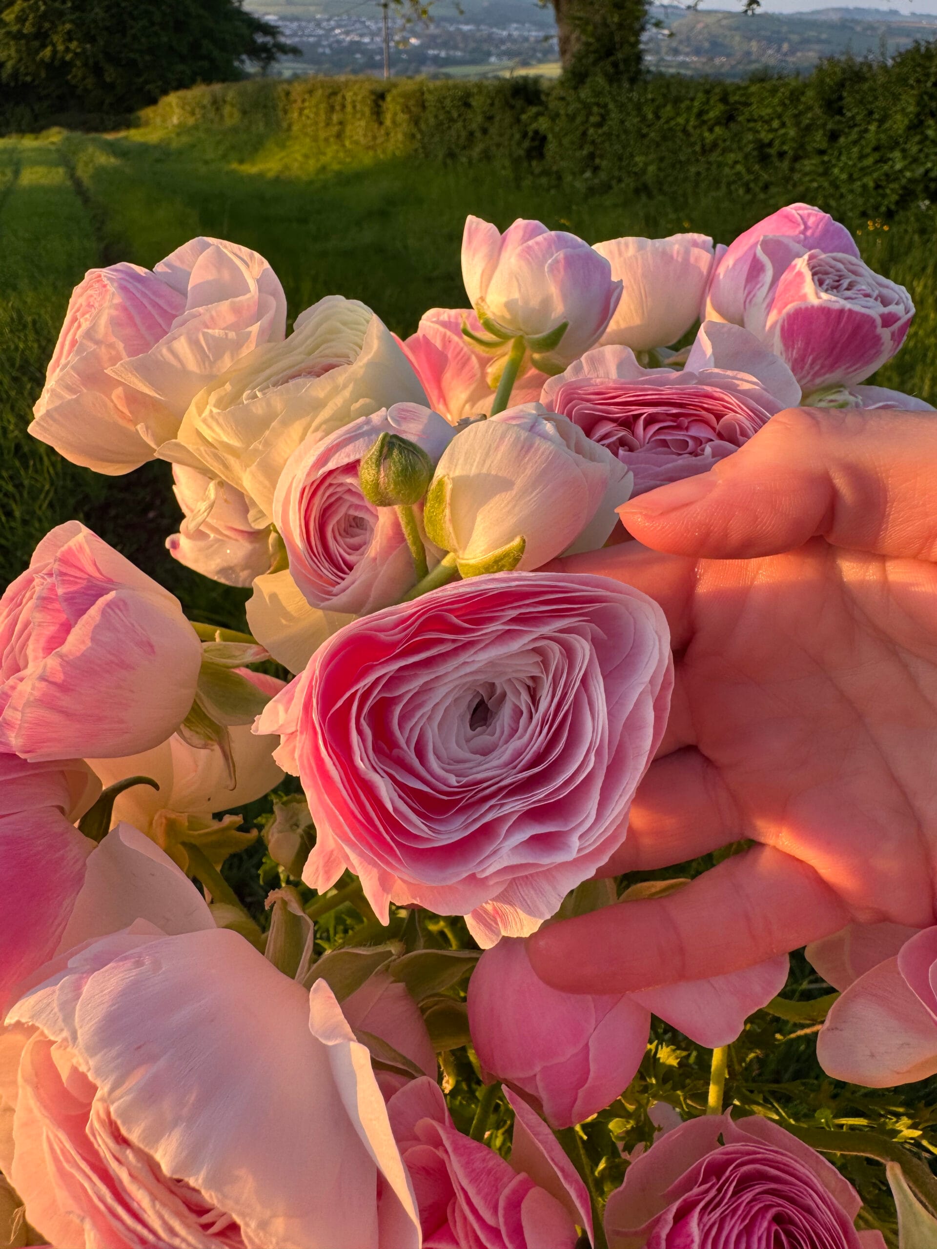 Allow the flowers to develop on the plant – opening up fully three times before picking for the biggest blooms and best vase life. Keep picking flowers to encourage more blooms. In good conditions Ranunculus can produce from 8-15 stems per plant.